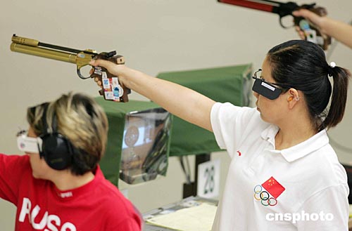 當地時間八月十五日上午,在雅典舉行的第二十八屆奧運會射擊女子十米氣手槍預賽中,中國名將陶璐娜未能進入前八名,無緣決賽。作者:毛建軍