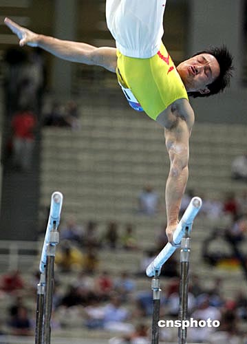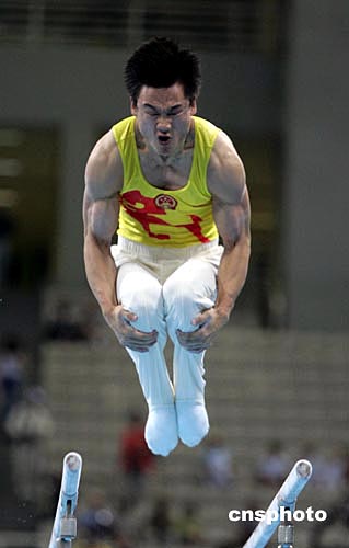 當地時間八月十六日晚,雅典奧運男子體操團體比賽在奧運體操比賽館舉行,中國隊衛冕失利,僅獲得第五名。中新社記者:毛建軍
