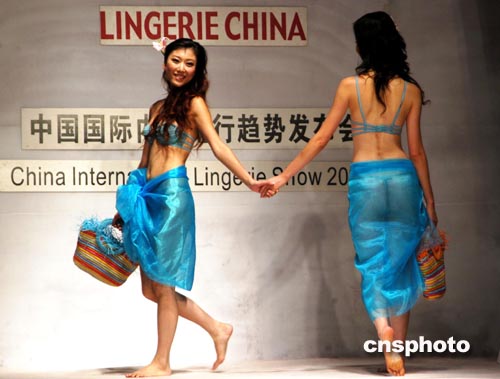 八月十九日,黛安芬、歐迪芬等世界多家知名內(nèi)衣品牌在北京舉行2005春夏中國內(nèi)衣流行趨勢(shì)發(fā)布會(huì),模特通過六個(gè)主題從色彩和風(fēng)格方面詮釋未來內(nèi)衣形象。中新社記者:王麗南