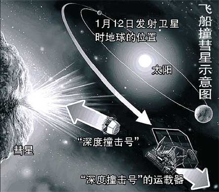 中新網1月12日電 國際在線消息:美國國家航空航天局(NASA)近日傳出消息,一艘名為“深度撞擊號”的飛船將于1月12日升空;6個月后,其搭載的撞擊器將直接沖向“坦普爾1號”彗星的彗核,完成人類首度撞擊彗星。此次撞擊將首次獲取大量彗核碎片,為人類探究太陽系起源提供新的線索,也為地球遭遇小天體撞擊時“轉守為攻”積累數據。