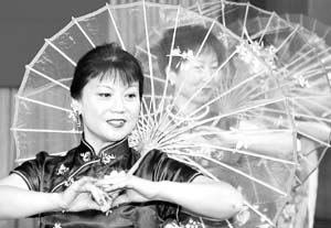 中新網1月19日電 據人民日報海外版報道,本月14日在俄羅斯首都莫斯科,幾名婦女在旅俄華僑華人華商新春招待會上表演花傘舞。