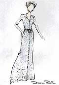 不過從白宮發布的設計圖來看,第一夫人此次的服裝似乎沒有什么新意可言,特別是在就職大典上的禮服更是沒有多少懸念,明顯的傳統保守選擇。白天是一件白色的凱斯咪套裝和搭配的套裙。晚上的宴會上,勞拉則會著一身銀藍色的薄紗曳地晚禮服,上墜有奧地利水晶,外配冰藍色外套。銀藍色的晚禮服是勞拉在四天慶典上的主打服飾。