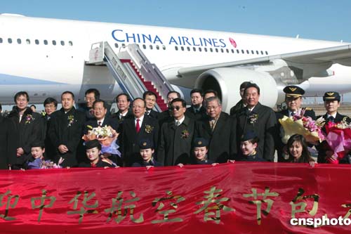 臺灣中華航空公司的民航班機一月二十九日十一時五十八分飛抵北京首都國際機場,這是五十六年來臺灣民航航班首度飛抵北京。