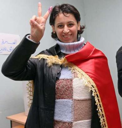 1月30日,一名伊拉克婦女在巴格達一處投票站投票后打“V”手勢,展示自己涂上顏料的手指。每位參加投票者在投票后都要在手指上涂上顏料作為標記。