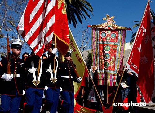美國海軍陸戰隊護旗兵入場助威