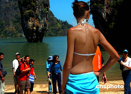 2月中旬的泰國(guó)布吉島一處箸名旅游景點(diǎn),游客絡(luò)繹不絕,游性濃厚。海嘯地震過后,到這里旅游的客人日益增多,當(dāng)?shù)芈糜螛I(yè)正在逐步復(fù)蘇。作者:宋吉河