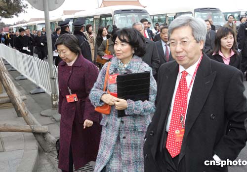 全國政協(xié)十屆三次會議三月三日下午在北京人民大會堂開幕,出席會議的方黃吉雯、李家祥等香港委員步入會場。作者:毛建軍
