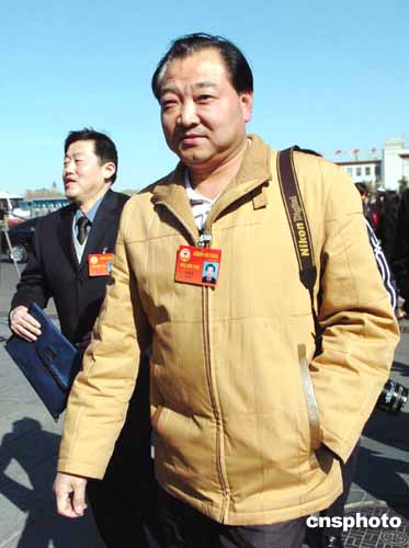 全國政協委員、奧運冠軍許海峰三月十二日下午在北京人民大會堂出席全國政協十屆三次會議閉幕大會。作者:陳文