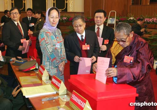 圖:少數民族代表投票選舉國家中央軍委主席