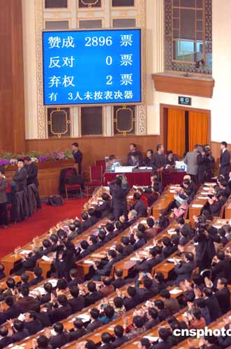 十屆全國人大三次會議表決通過反分裂國家法草案