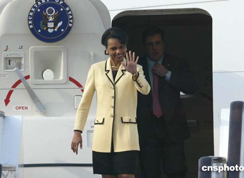 圖:美國國務卿賴斯抵達北京
