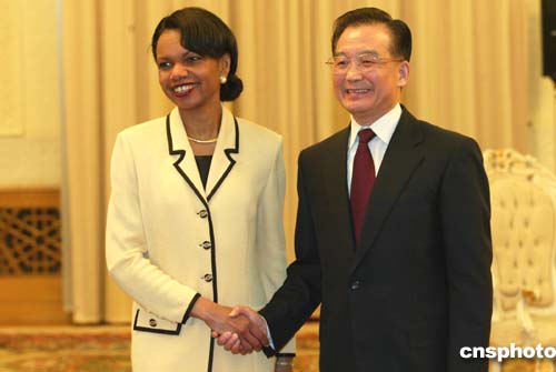快訊:中國國務院總理溫家寶會見美國國務卿賴斯