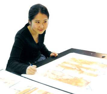 展覽中一件主要作品是一組用中國古老青花薄瓷燒成的CD,這位上海姑娘別具匠心、充滿現代氣息的作品隨即引起了法國藝術界人士的極大關注。