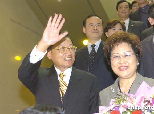 中國國民黨副主席江丙坤率領的國民黨高層大陸參訪團一行三十四人,二十八日下午飛抵廣州國際白云機場,開始對大陸進行參觀訪問。作者:羅仰明