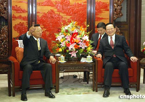 三月三十一日,國務委員唐家璇在北京會見中國國民黨副主席江丙坤一行。作者:廖文靜