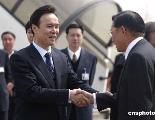 四月一日,中國國民黨副主席江丙坤完成在中國大陸三地的“經貿之旅、緬懷之旅”,在北京首都國際機場啟程返臺。中共北京市委副書記龍新民在機場為其送行。作者:廖文靜
