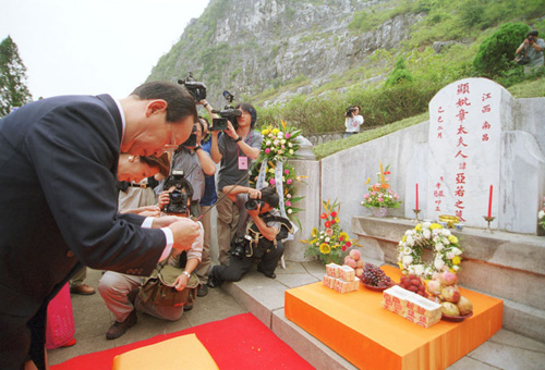 蔣孝嚴此前也數度來桂林祭母。最近一次是去年七月二十七日,攜夫人黃美倫來到長眠于桂林市郊區馬鞍山西側鳳凰嶺下母親章亞若墓前祭奠母親,告慰九泉之下的母親已了卻認祖歸宗的心愿。據悉,此次蔣孝嚴大陸之行,在桂林只作短暫停留。四日掃墓結束后,當天下午便離開桂林,飛西安出席當地一個經貿活動。有消息稱,若時間允許,蔣孝嚴也可能順道訪國民黨主席連戰的祖母墳墓,為連戰的西安之行鋪路。之后會再飛返浙江溪口蔣氏故居祭祖,到毛太夫人墳前掃墓。