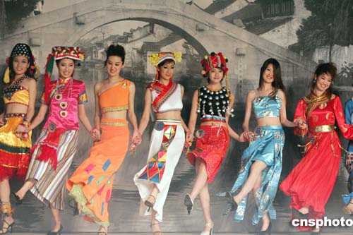 “古鎮西塘杯”二○○五年國際旅游小姐冠軍總決賽北京賽區選拔賽四月五日在北京SOHO社區廣場舉行,來自五個少數民族的二十名參賽選手經過民族服裝表演、才藝展示,以及旗袍、泳裝展示、旅游知識問答等多個環節的比拼。