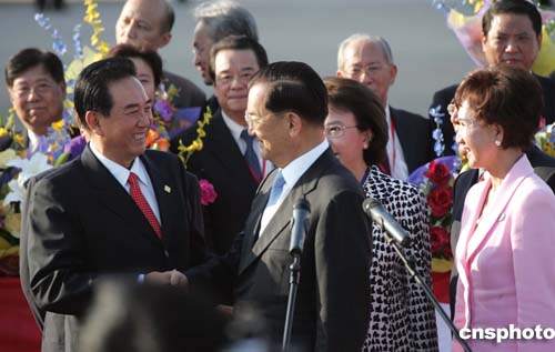 中共中央臺辦主任陳云林、中共江蘇省委副書記任彥申、中臺辦副主任李炳才與當地多位官員趨前到舷梯前迎接。