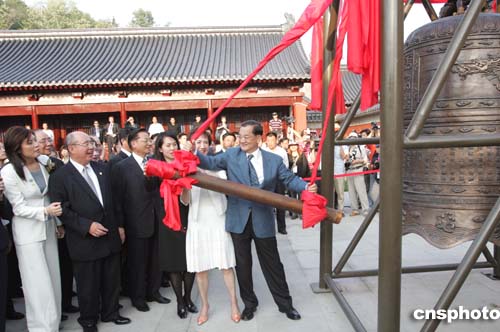 今天,天妃宮里香火縈繞。連戰(zhàn)一行在此參觀了新落成的媽祖神像。連戰(zhàn)和夫人及國民黨三位副主席,相繼撞響了平安鐘,寓意四海平安、吉祥如意。