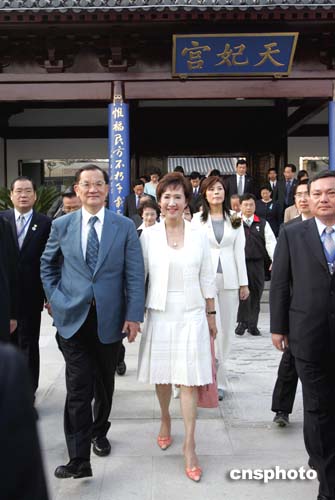 中新社南京四月二十七日電(記者 陳光明 丁梅)中國國民黨主席連戰(zhàn)率領(lǐng)的國民黨大陸訪問團,今天下午五時來到南京天妃宮參觀。