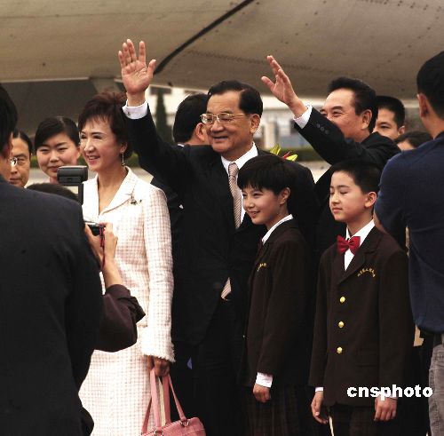 中共中央臺辦主任陳云林、中共北京市委副書記龍新民、在京臺商代表和北京各界代表列隊在停機坪熱烈歡迎連戰一行。