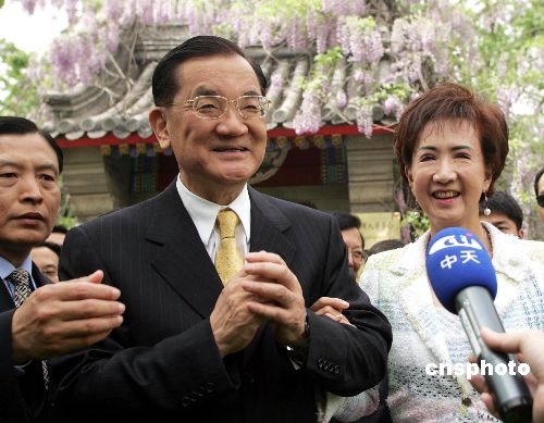 二零零五年四月二十九日,中國國民黨主席連戰(zhàn)在北京大學演講后,攜夫人參觀母親趙蘭坤當年在燕京大學就讀時曾住過的靜園六院中的一院。圖為連戰(zhàn)在院外接受記者采訪時高度稱贊北大學子。作者:武仲林