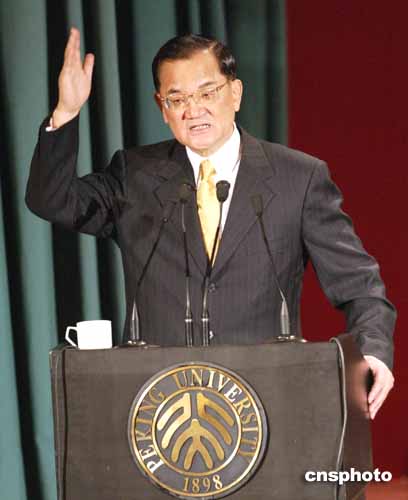 據了解,此次連戰“演講會”可謂一票難求,大約只有四百名幸運兒獲準進場。許多院系特為沒有現場票的學生放假半日,設有電視直播的北大圖書館和食堂內人員爆滿。