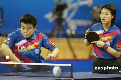 圖:世乒混雙比賽王楠、王皓輕松過兩關