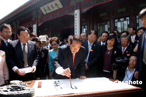 五月十一日上午,親民黨主席宋楚瑜在清華大學發表演講,演講結束后,親民黨主席宋楚瑜率親民黨大陸訪問團清華大學的主要景點和經典建筑并題寫“清華厚德自強不息”。作者:張勤