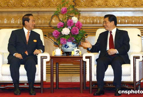 胡錦濤強調,兩岸合則兩利,分則兩害。構建和平穩定發展的兩岸關系,對兩岸同胞有利,對中華民族的長遠發展有利。我們黨愿同貴黨繼續為此一道努力。今年三月,我提出了新形勢下發展兩岸關系的四點意見,即:堅持一個中國原則決不動搖,爭取和平統一的努力決不放棄,貫徹寄希望于臺灣人民的方針決不改變,反對“臺獨”分裂活動決不妥協。
