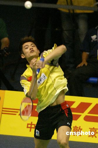 五月十二日,在北京首都體育館進行的第九屆蘇迪曼杯世界羽毛球混合團體錦標賽大戰進入了第三天,中國迎戰實力強勁的印度尼西亞隊,在男子單打的比賽中,中國名將林丹二比零戰勝印度尼西亞選手索尼。圖為林丹在比賽中。作者:盛佳鵬
