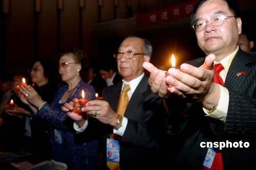 隨后,四百多位海外華僑華人一起點燃手中的蠟燭,唱起兩岸人民熟悉的歌曲《龍的傳人》,在燭光和歌聲中祝福海峽兩岸早日統一、人民永享太平。