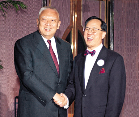 曾蔭權昨天下午五時在君悅酒店大禮堂旁的一個房間,與曾獲大紫荊勛章的十六名人士茶敘,他們在四時半開始陸續進場。據了解,大部分嘉賓在會上,向曾蔭權說了些勉勵性說話,而曾蔭權則向他們介紹自己的施政理念。