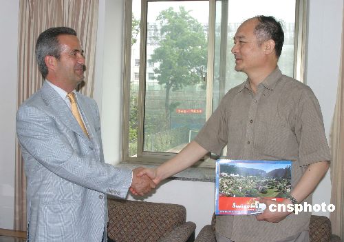 | 6月23日,國務(wù)院僑辦副主任趙陽會見瑞士提起諾州美利德市“微縮瑞士”公園園長Dominique Vuigner先生。中國深圳著名的“錦繡中華”公園與已有五十年歷史的瑞士提州“微縮瑞士”,通過國僑辦介紹結(jié)成友好園區(qū),將開展中瑞微縮景區(qū)建設(shè)、工藝、管理及旅游方面的交流與合作。作者:田地