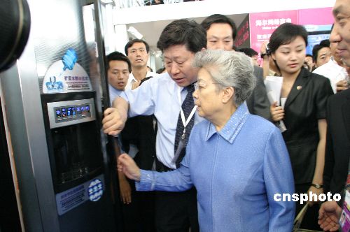 2005年中國國際電子博覽會7月1日開幕,中國國務院副總理吳儀出席開幕式并宣布博覽會正式開幕。本次博覽會有320多家企業參展,以“3C融合與無縫生活”為主題,并首次由美國消費電子協會為海外主辦單位。圖為吳儀副總理在海爾集團首席執行官張瑞敏的陪同下參觀海爾產品。作者:修建華