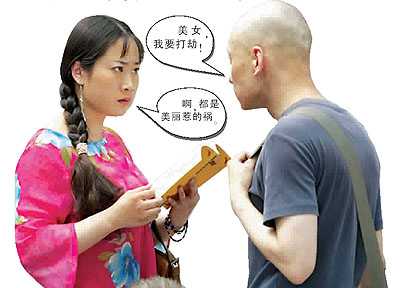 該片包括三個(gè)小故事。首先拍攝的是故事《打劫》。導(dǎo)演劉浩說(shuō),劇本是依照著芙蓉姐姐本身的性格編寫(xiě)的。《打劫》表現(xiàn)了一名被打劫的女子,和劫匪進(jìn)行智斗的故事。現(xiàn)場(chǎng),芙蓉姐姐的衣著依然走夸張性感路線,身穿一件半透明的薄紗上衣,腿上套著一條緊繃繃的繡著花紋的白褲子。但她面對(duì)鏡頭時(shí)比較自然,表演也算自如,導(dǎo)演對(duì)她一直以“美女”相稱(chēng),芙蓉姐姐滿(mǎn)口答應(yīng)。