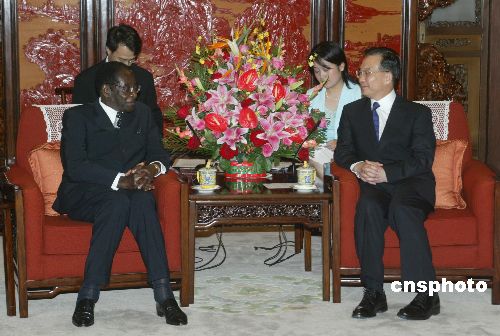 圖:溫家寶會見津巴布韋總統穆加貝
