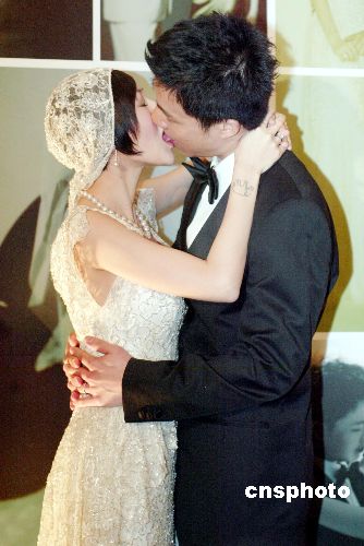 七月二十九日,臺灣著名藝人“小S”徐熙娣的訂婚典禮在臺北舉行,在儀式上與未婚夫許雅鈞激情舌吻。作者:盛佳鵬