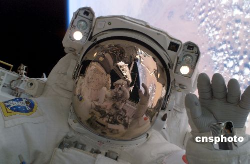 圖:“發現號”宇航員太空行走 放眼浩瀚宇宙