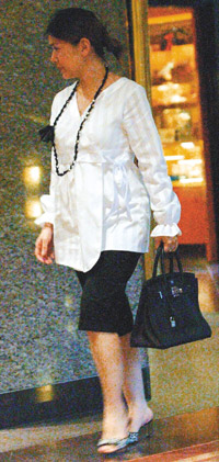 中新網(wǎng)8月4日電 據(jù)臺(tái)灣媒體報(bào)道,懷孕5個(gè)月的張清芳,昨天傍晚跟好友秀秀、洪偉明等人在遠(yuǎn)東飯店喝下午茶,她穿著黑白色系孕婦裝,手提黑色Hermes柏金包(約40萬臺(tái)幣),十分高貴典雅,跟朋友喝完下午茶,晚上陪公婆吃飯,今晚還要陪先生宋學(xué)仁出席飯局,張清芳已完全從歌手轉(zhuǎn)變?yōu)榉Q職的宋太太。