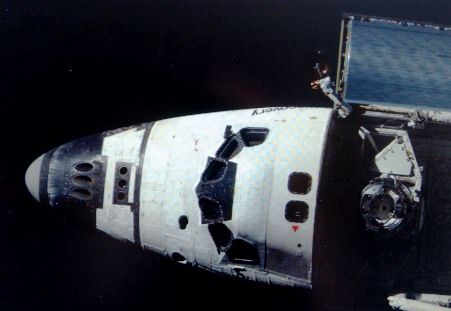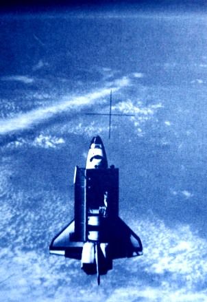 太空中飛翔的美國發(fā)現(xiàn)號航天飛機。