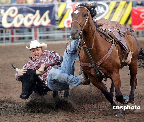 火爆激烈的牛仔競(jìng)技大賽日前在美國(guó)堪薩斯州道奇城開(kāi)幕。圖為8月5日,,來(lái)自俄克拉荷馬州的牛仔正在參加摜牛比賽。道奇城是美國(guó)著名的“牛仔城”,以其濃郁的西部風(fēng)情和牛仔文化著稱于世。作者:Ic/cnsphoto