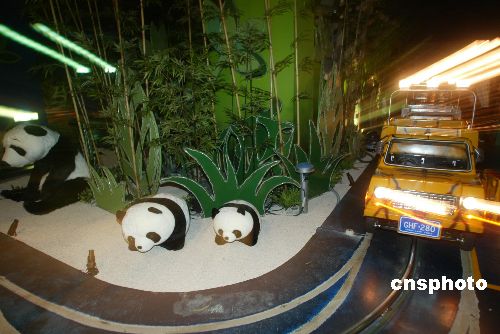 八月九日,臺北木柵劍湖山兒童玩國正在進行“我愛貓熊寓教展”,在其游樂項目中,參觀者可以乘坐可愛的熊貓吉普車,進入熊貓生態的園地。作者:盛佳鵬