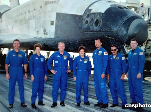 女機長科林斯率機組下機后說,都迫不及待地想看看返航后的航天飛機外面是什么樣子。大家首先環(huán)繞發(fā)現(xiàn)號一周,仔細巡視機身上的傷痕。