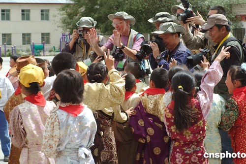 據介紹,攝影家們應國務院新聞辦公室、中國攝影家協會、西藏自治區人民政府新聞辦公室邀請,于六月二十五日至七月十日前來參加“百名中外攝影家看西藏”攝影活動。在西藏拍攝期間,中外攝影家分四組分別前往拉薩、日喀則、山南、林芝、那曲五個地區(市)進行拍攝,到達一百多處拍攝點,拍攝內容涉及西藏的自然風光、宗教場所、文化教育、民俗民風、工廠企業、農村牧場等,多方位、多層次地反映了西藏今天的真實面貌。在京期間,攝影家們還參觀拍攝了雍和宮、故宮、老舍茶館和殘長城。
