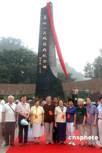 | 8月12日,“長(zhǎng)城抗戰(zhàn)紀(jì)念碑”揭幕儀式在河北遷西縣喜峰口老婆山下舉行,以紀(jì)念1933年春長(zhǎng)城抗戰(zhàn)和國(guó)民革命軍二十九軍將士無畏犧牲的民族愛國(guó)精神。圖為長(zhǎng)城抗戰(zhàn)將領(lǐng)蔣光鼐之子蔣建國(guó)(左一)、趙登禹之女趙學(xué)芬(左三〉、佟麟閣之子佟兵(左四〉、李濟(jì)深之女李筱桐(左五〉丶何基灃之女何玟〈左六〉、于學(xué)忠之女于允賢〈左七〉、馮冶安之女馮炳如〈左八),以貴賓身份參加儀式。作者:鄒憲