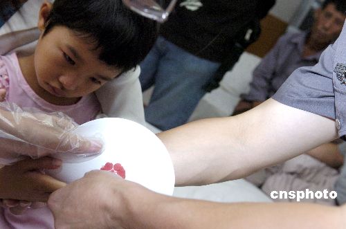 中新社興寧八月十三日電 (記者 唐貴江)廣東興寧“八·七”特大透水事故中被困礦工家屬的DNA檢驗(yàn)血樣提取工作,今天正式展開。來自梅州等地的法醫(yī)從今天早上起在各礦工家屬安置點(diǎn)進(jìn)行血樣采集。