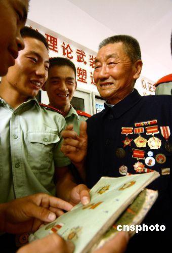 為紀念“8·15”抗戰勝利60周年,武警江蘇總隊所屬各部隊紛紛開展形式多樣的紀念活動。8月14日,江蘇泰州市支隊邀請江堰市溱潼鎮湖北口村戰功卓著的老英雄田春富來隊做報告,聽老人家娓娓訴說當年戰場經歷,戰士們被深深地吸引住了!作者:唐占軍