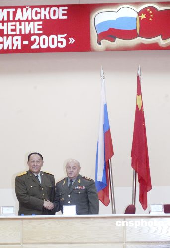 八月十八日,中國人民解放軍總參謀長梁光烈上將(左)和俄羅斯聯(lián)邦武裝力量總參謀長巴魯耶夫斯基大將,在位于符拉迪沃斯托克的俄羅斯太平洋艦隊共同宣布,“和平使命—2005”中俄聯(lián)合軍事演習正式開始。此次聯(lián)合軍事演習,圍繞共同打擊國際恐怖主義、極端主義和分裂主義,應對各種危機,主要演練戰(zhàn)略磋商與戰(zhàn)役籌劃、兵力投送與展開、實施交戰(zhàn)三個訓練問題。演習跨越兩國陸、海、空域,參演軍兵種齊全,演練科目較多。作者:王麗南